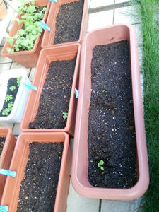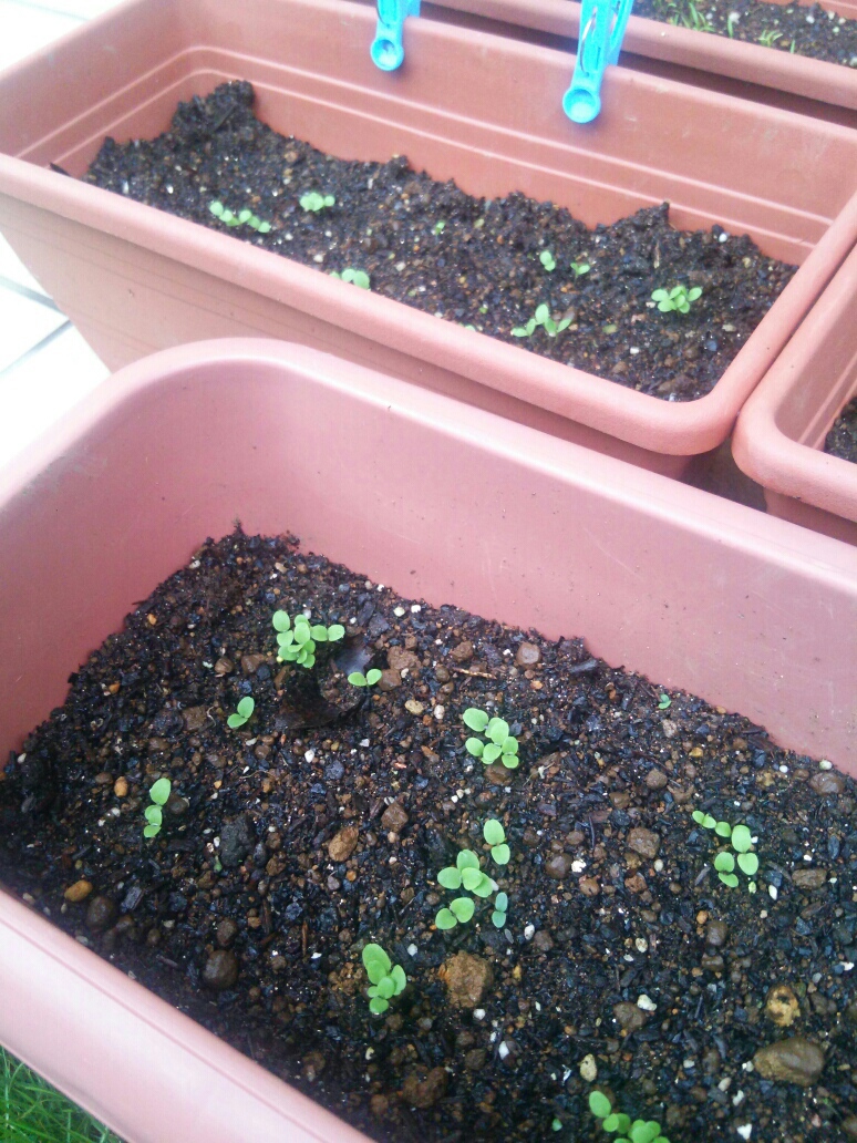 明日は更に気温が下がるそうで、きっと風邪引くだろうなぁ、と思ったり。 ちゃんと布団かぶって寝ないといけませんね。 で、週末から今日にかけての悲しい出来事。 病気に強く虫害のない野菜と言われているサンチュ。芽を出して順調に育っていました。 以前の画像 ところが週末の朝、様子をみると、 あれ、少ない・・・ 昨晩は風がビュンビュン吹いていたから、飛ばされてしまったのか。。。 とありもしない可能性で安易に考えていました。 そして今日の朝 まっさら~~~ あー、昨晩も風吹いてたっけ? ってそんなわけないので、よーく見ると土を掘ったような跡も。 飛ぶ鳥跡をにごす。 おそらく鳥、ヒヨドリの仕業だと思うのですが、確証はなく。バジルも大根も無事なのを見ると、サンチュが好物なんだっけ?と考えたり。 何にしても、一からやり直しです。幸い種はまだ残っています。 次はネットを張って育つかどうか確かめてみたいと思います。 PR 【スポンサーリンク】