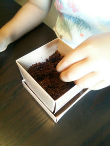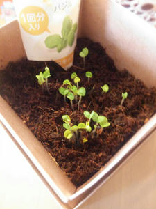 ちょうどハーブを育てようかと考えていたこともあり、バジルの栽培セットを買ってきました。 あ、最初に写真撮るの忘れた・・・ 土は大さじ一杯くらいの量ですが、水で膨らむらしい。ということでお水を。 おーー、膨らんだ!! 膨らんだ土をほぐして、種を植える穴を開けて、娘が種まきを。 種に土をかぶせて完成。 大きさはこのくらい。 水やりは娘の仕事。 芽が出るには5日ほどかかるとのことです。 完成品 新たな夏休みの自由研究として、子供と一緒に育てたいと思います。 ちなみに、わけぎのその後ですが・・・ 水に浸けてるだけだったのである程度伸びた後に真ん中からクニャっと折れてしまいました。 ということで見栄えも悪くなったので写真も撮らずに終了。また機会をみて試したいと思います。 【スポンサーリンク】