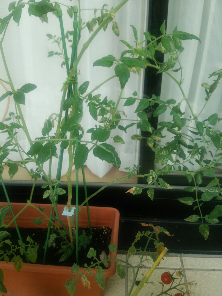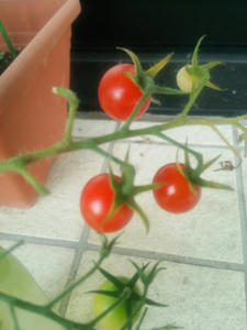 あとはミニトマト、以前から採っては食べていますが、まだまだ実が付きます。 小さいけどしっかり色付いたミニトマト。 直径は1円玉か、それよりも少し小さいくらいかな。 黄色くなったアイコ。 既に何個か食べています。 アイコはフルーツみたいに甘いかなー、と思っていましたが、食べるとトマトでした。むしろいつものミニトマトよりトマト感が強いかも。 しかし子供たちは毎日採って食べています。そんなにトマト好きだったっけ? 実が付いた枝はほとんど水に差していますが、本枝の様子は まだどんどん芽を出して花が咲いています。相変わらずグニャリと曲がっていますが。。。 もうしばらくはミニトマトを収穫出来そうです。 PR 【スポンサーリンク】