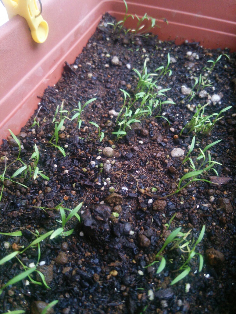 牛乳パック&プランターの人参も芽が伸びてきました。