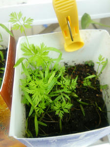 人参は元気のあるものを残して、育ちの悪いものを間引く、と言われていますが、みんな元気ですし、判断がつかないんです。 |