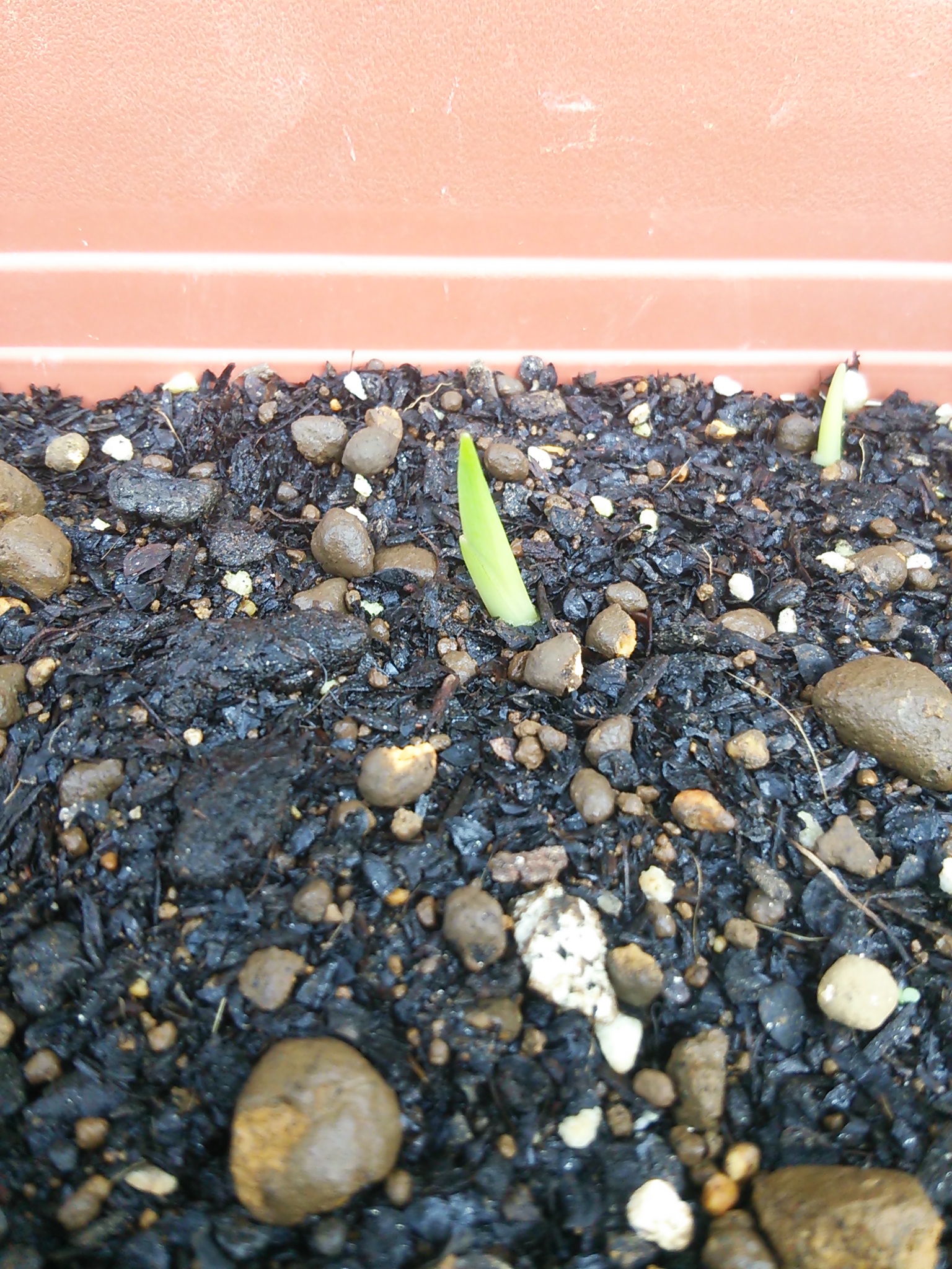 そのチューリップ、植えるのが早すぎたのか、もう芽が出てきてしまいました。