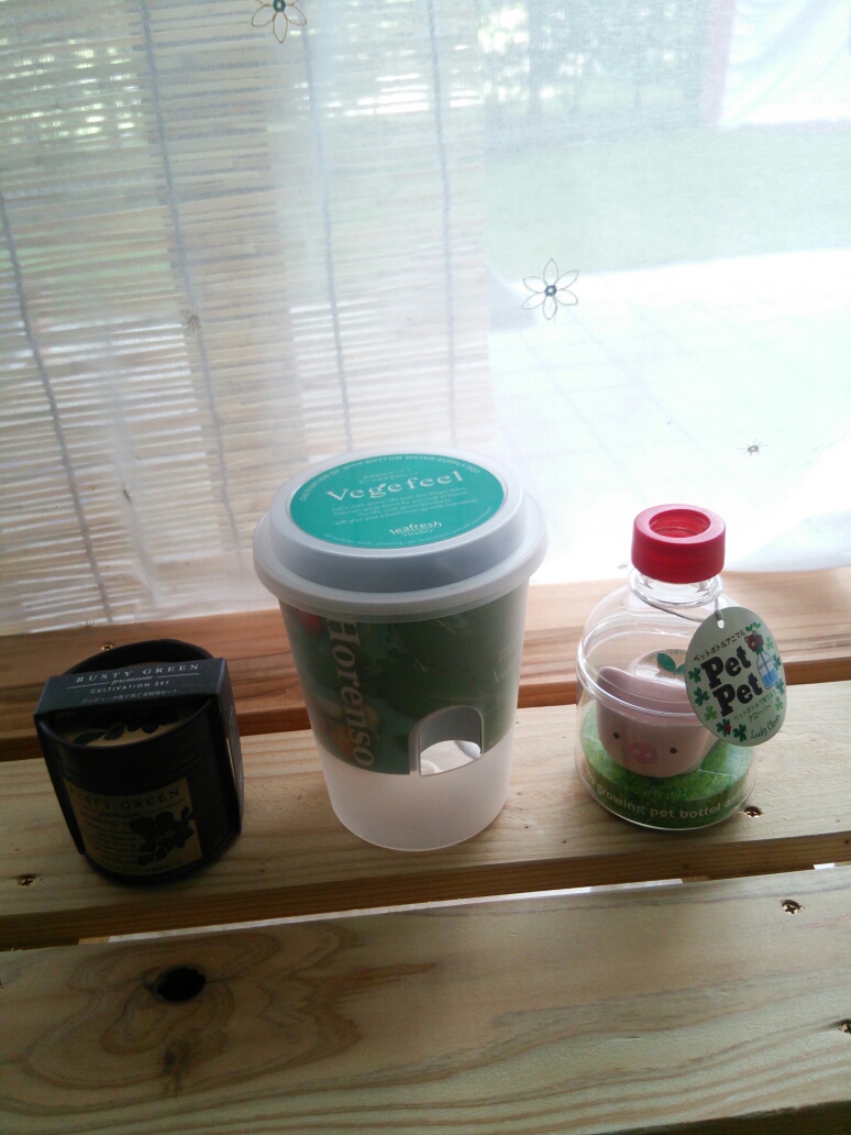 景品に釣られて行ってきたのですが、思わぬ大収穫となりました。 その景品たちの一部がコレ。 栽培キットだけでも三点、楽しくなっちゃう! こちらは、ほうれん草。 カップ形のもの。半透明の容器でオシャレ。こちらは夏の間は暑すぎるようなので、秋ごろまで保存。 こちらはは、クローバー。 こちらはいつでも植えてよさそうです。豚の容器が上木鉢替わりになるようで、子供に最適かも。 でも、クローバーってそのへんにもいっぱい生えてるけど?? そして、ワイルドストロベリー。 秋に育ててみようかなぁ、と考えていたのでタイムリーな景品! 秋の中頃がよさそうなので、これもしばらく保管。 ほかにも子供用の手作りのベンチや、花火、タンブラー・ティッシュ・ボールペン・おやつなどなど。 子供たちはかき氷を貰って嬉しそうでした。 夏はイベントが多くて楽しい。 今日も充実したいい休日でした。 PR 【スポンサーリンク】