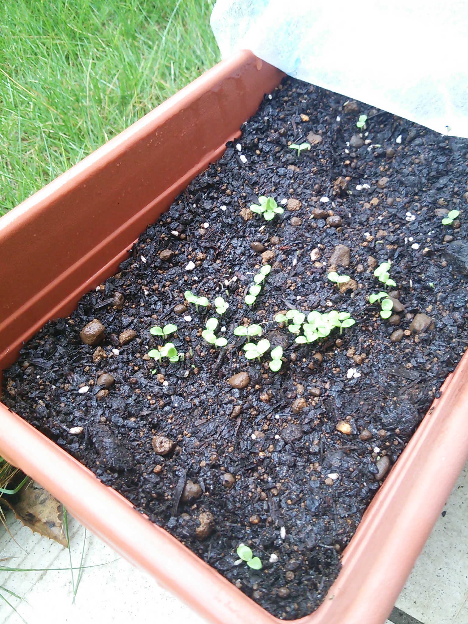 基板の通信回路故障、というのが原因だったとのこと。ハード要因でしたか。 やっと使いなれたものに、と思ったのですが、1週間使っていると代替機のほうに慣れちゃいますね。 2度も(おそらく虫に)被害にあったサンチュ、三度目の正直で植え直しています。 見た目には分かりませんが、土を買い替えてみました。 そして不織布をしつがりと。不織布って水をはじくんですね。 うっすらと見えていますが、中の様子は 芽が生えてきました。 ここまでは以前と一緒なので、ここから食われないかが勝負になります。 あと、このプランターは今までのプランターと置き場所を変えてみました。 今までのプランターは まっさらな状態。何の異常もなく見えますが、この土の中に虫がいるのでしょうか。。。 土の中は後日調べるとして、隔離したプランターのサンチュがしっかりと育ってくれることを祈ります。 【スポンサーリンク】