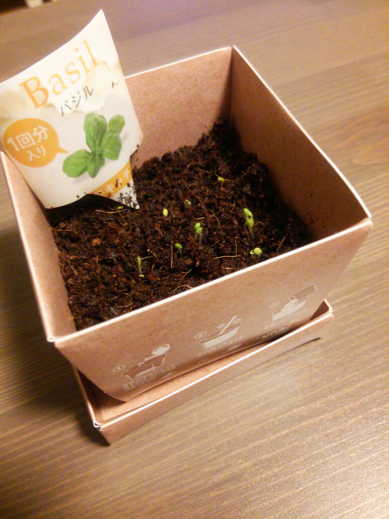 さて、夏休みの自由研究、バジルの栽培ですが、芽が出ました。