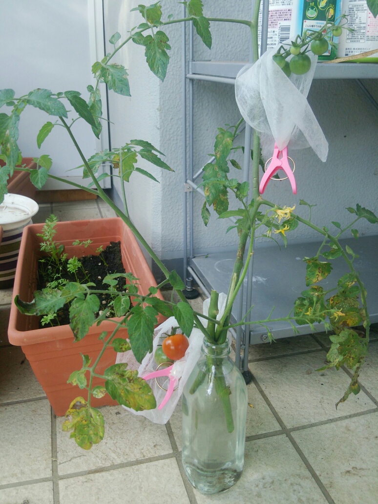 トマトの実は熟すかどうかは分かりませんが、これで様子を見てみます。