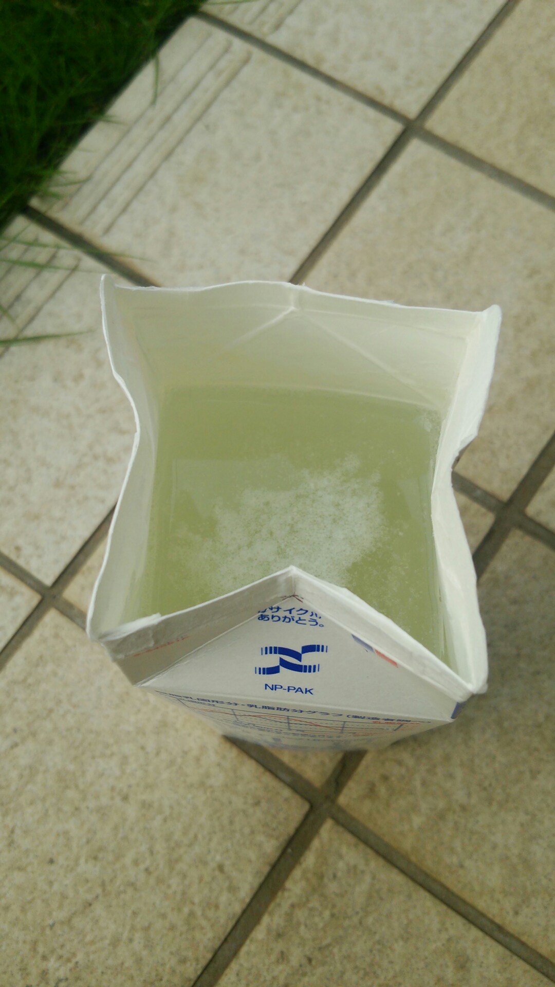 ではなく米のとぎ汁です。牛乳パックにいれると紛らわしいですね。