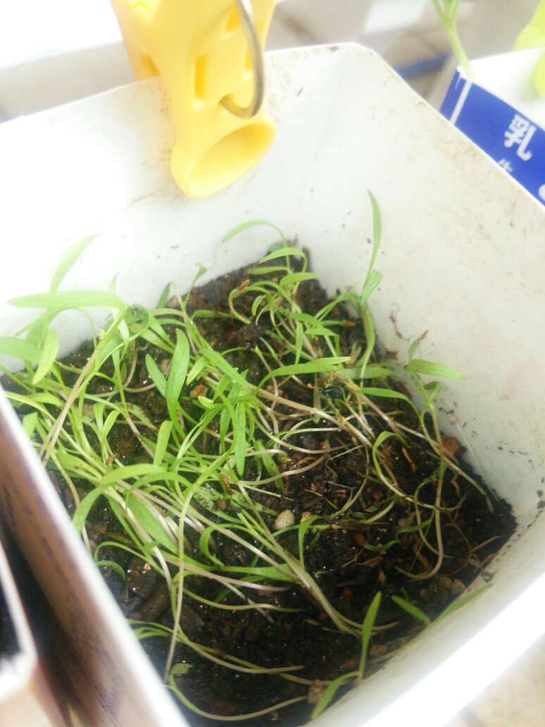 牛乳パック&プランターの人参も芽が伸びてきました。