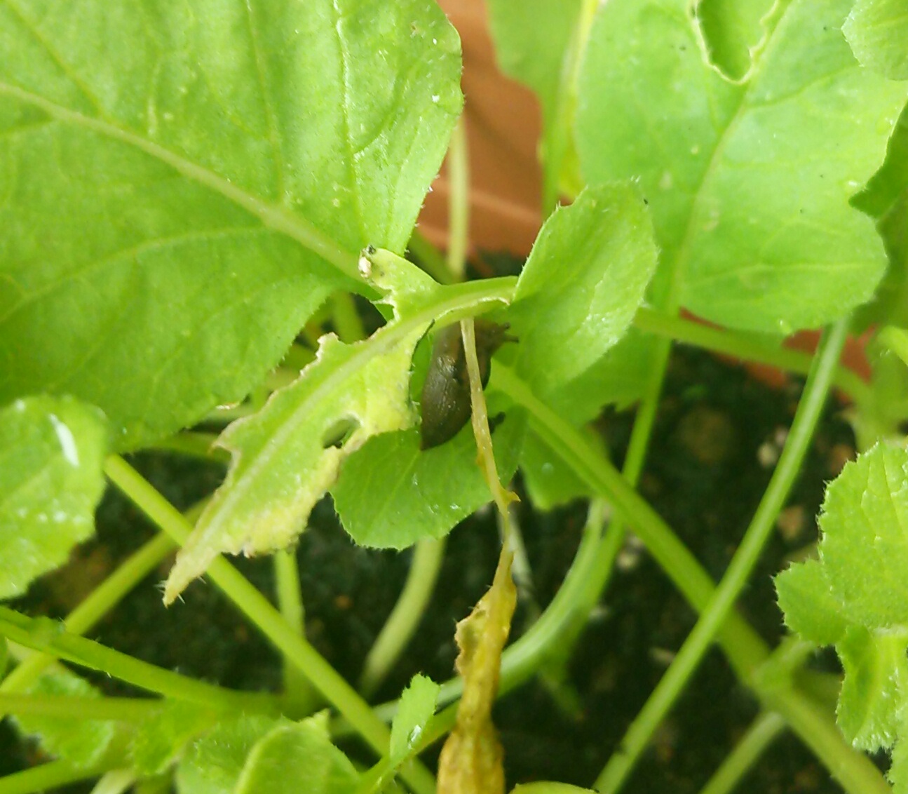 これは・・・ナメクジですか。犯人はこいつだな。サンチュを食べた犯人もこいつか。