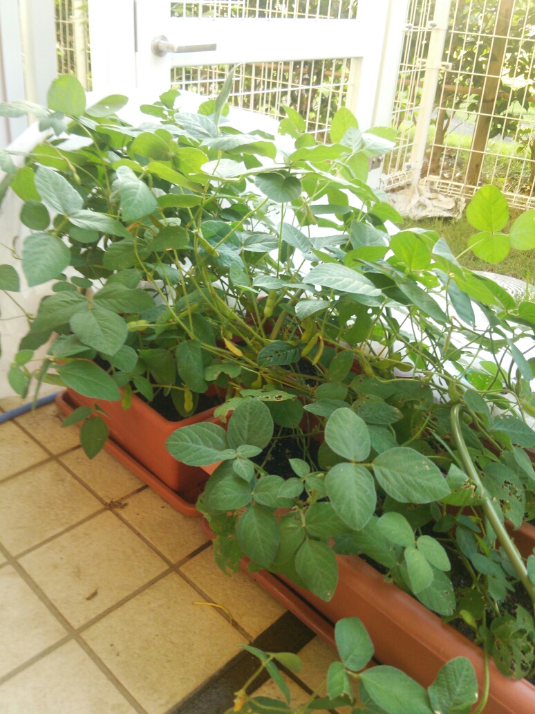 この「子供同伴の選挙」を今秋から認められるように法改正するそうです。ということは今までは子育て家庭の意見は届いてなかった部分もあるんですね・・・。 私の知らない部分でいろいろと問題があるのでしょうが、改良となることを願います。 本題。 先日1度目の収穫をした枝豆の状況です。 ちょっとカオス的でワサワサしていますが、こんなものでしょうか。 順調に実が付き大きくなっています。 ところどころ葉っぱは食われていますが。 また来週再来週くらいに収穫できるでしょうか。 子育て世代が子供同伴でも栽培できる枝豆、当たり前か。 すくすくと育って欲しいものです。 PR 【スポンサーリンク】