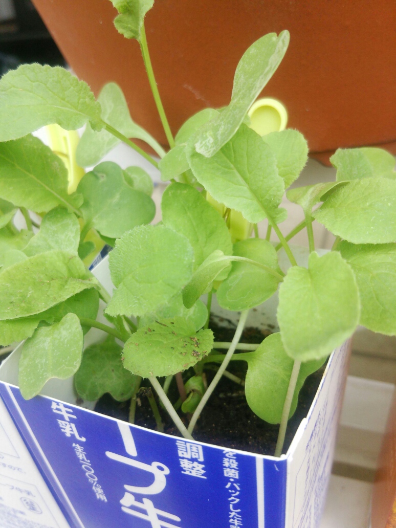 はつか大根、プランターも牛乳パックも順調